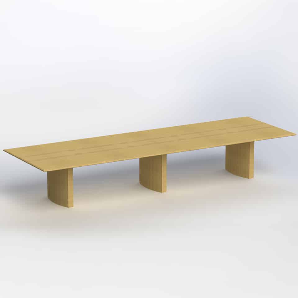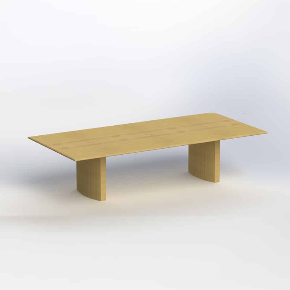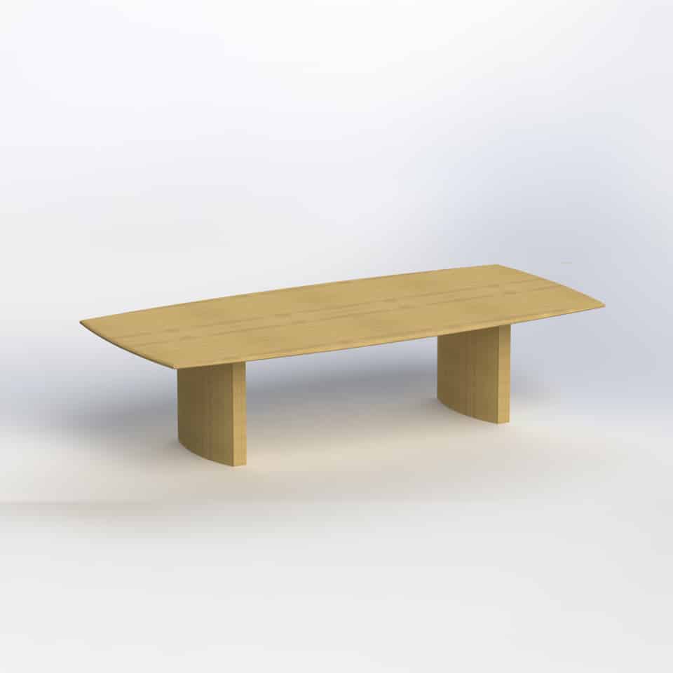 Boat shaped table two piece - long grain, 2 x bases 3000 x 1400/1200