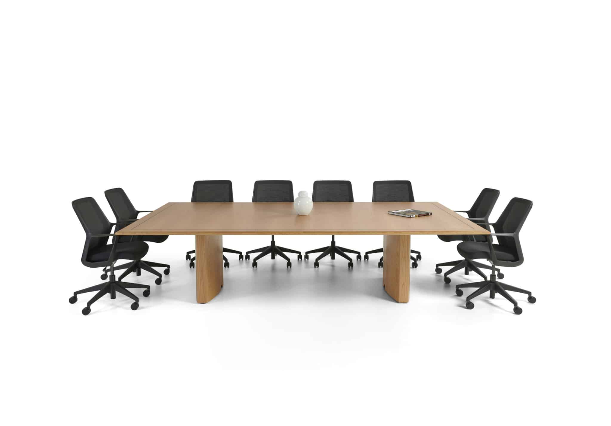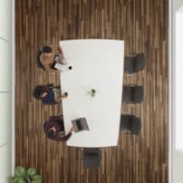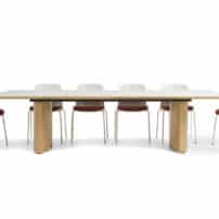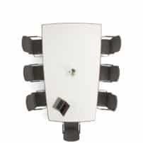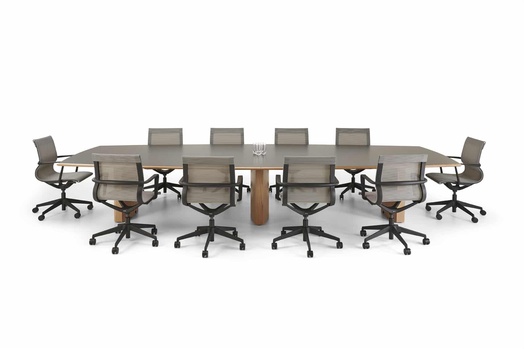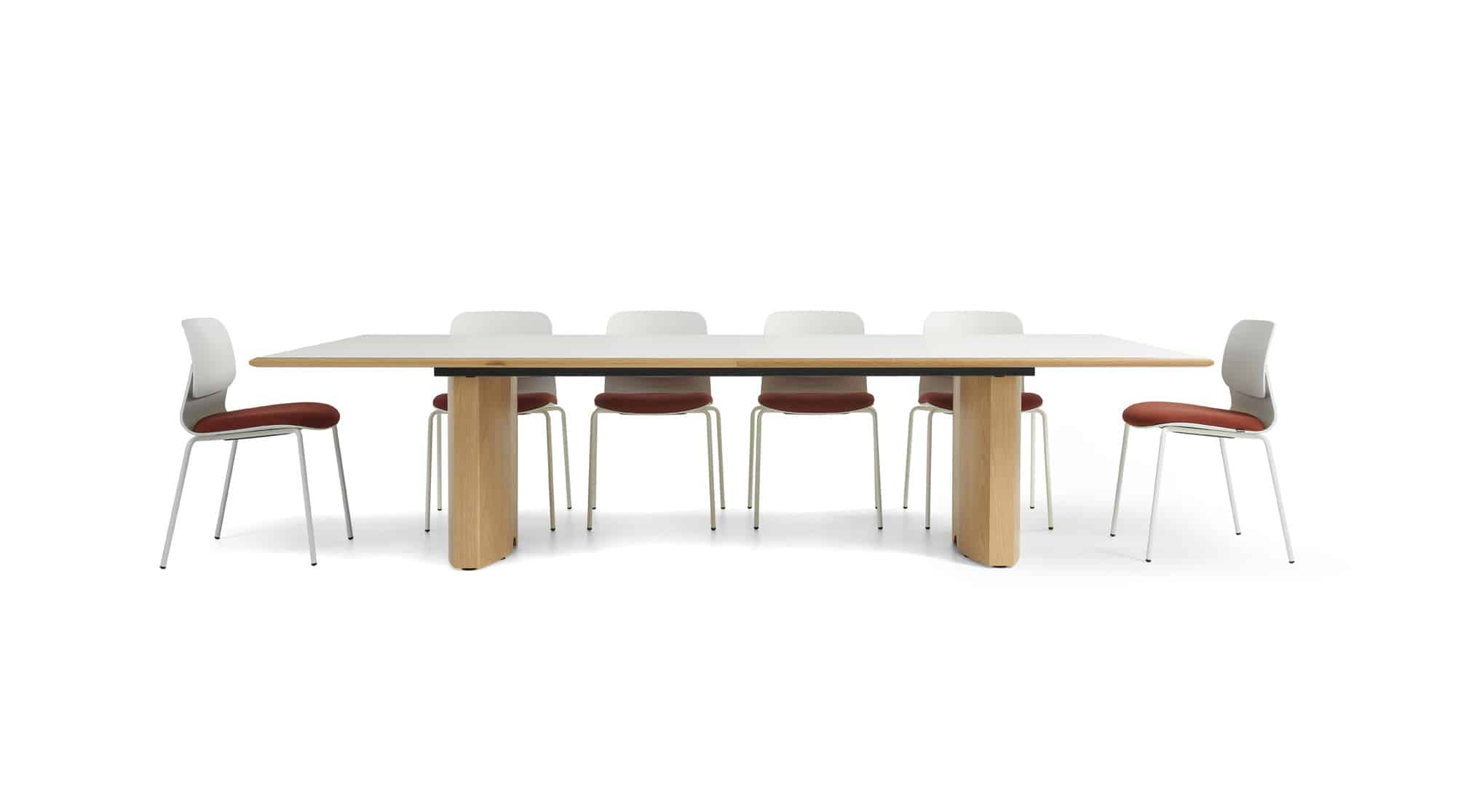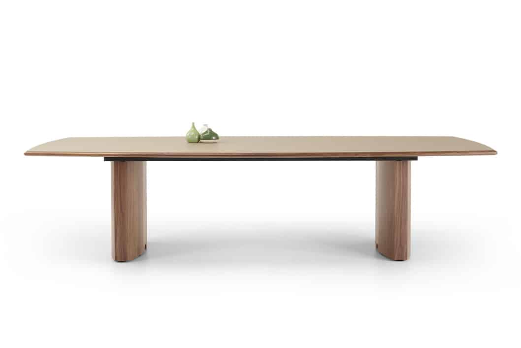Carefully crafted using the finest materials, the aerofoil table collection combines elegance and functionality for conference and meeting room solutions. The beautiful aerofoil shaped table legs both provide the stability for these architectural furniture pieces and also provide a simple cable management system through a discreet lift-off panel on the inside face of the curved and veneered leg, allowing power modules to be placed directly over the leg frames and the cables to be easily managed vertically. Run your hands over the table tops which are finished with real wood veneer, or nano-laminate over solid wood lippings and a ‘bullet’ edge profile, and you can appreciate not only its undeniable design excellence, but its meticulous craftsmanship and longevity.