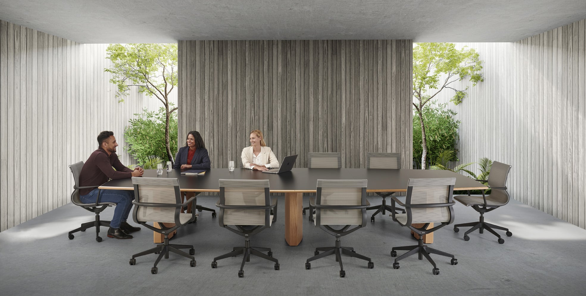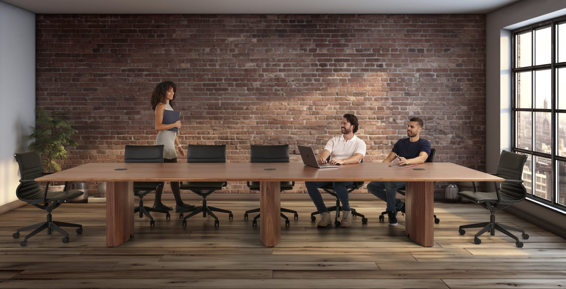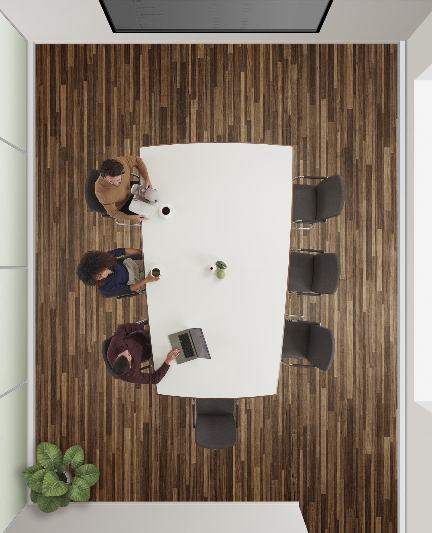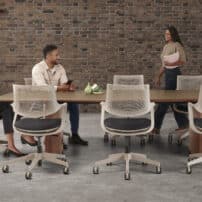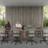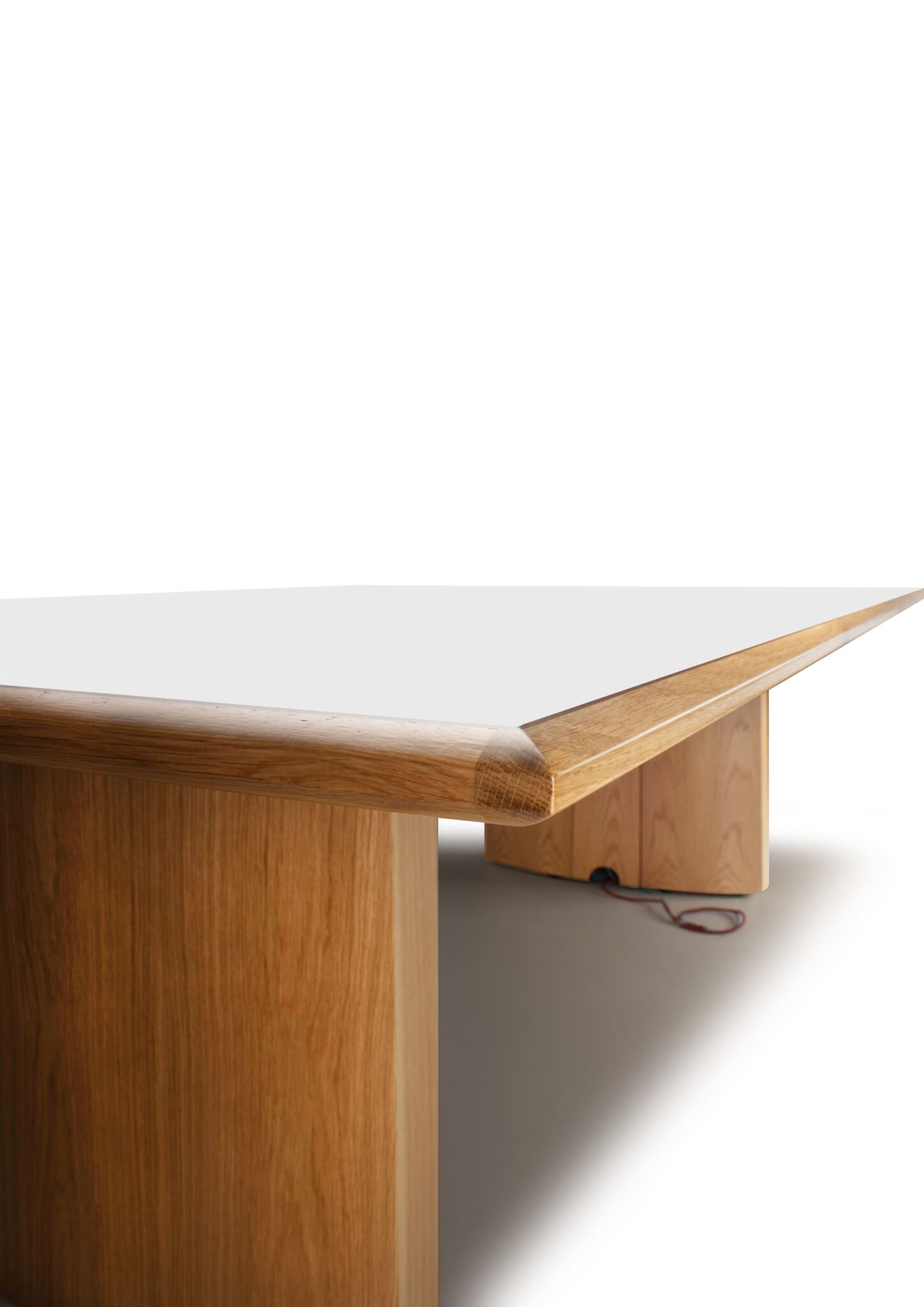 Carefully crafted using the finest materials, the aerofoil table collection combines elegance and functionality for conference and meeting room solutions. The beautiful aerofoil shaped table legs both provide the stability for these architectural furniture pieces and also provide a simple cable management system through a discreet lift-off panel on the inside face of the curved and veneered leg, allowing power modules to be placed directly over the leg frames and the cables to be easily managed vertically. Run your hands over the table tops which are finished with real wood veneer, or nano-laminate over solid wood lippings and a ‘bullet’ edge profile, and you can appreciate not only its undeniable design excellence, but its meticulous craftsmanship and longevity.