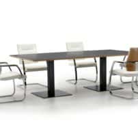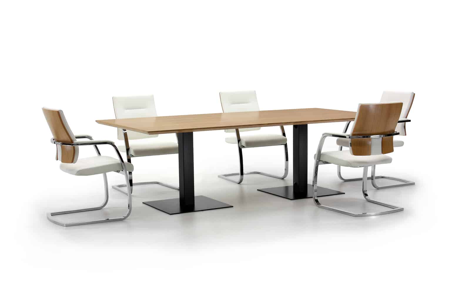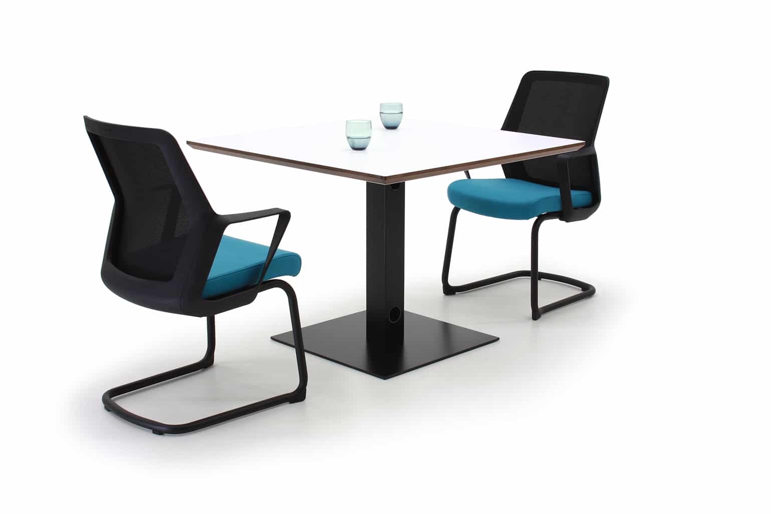 square meeting table with a square steel pedestal base 1000 x 1000 x 740
