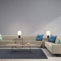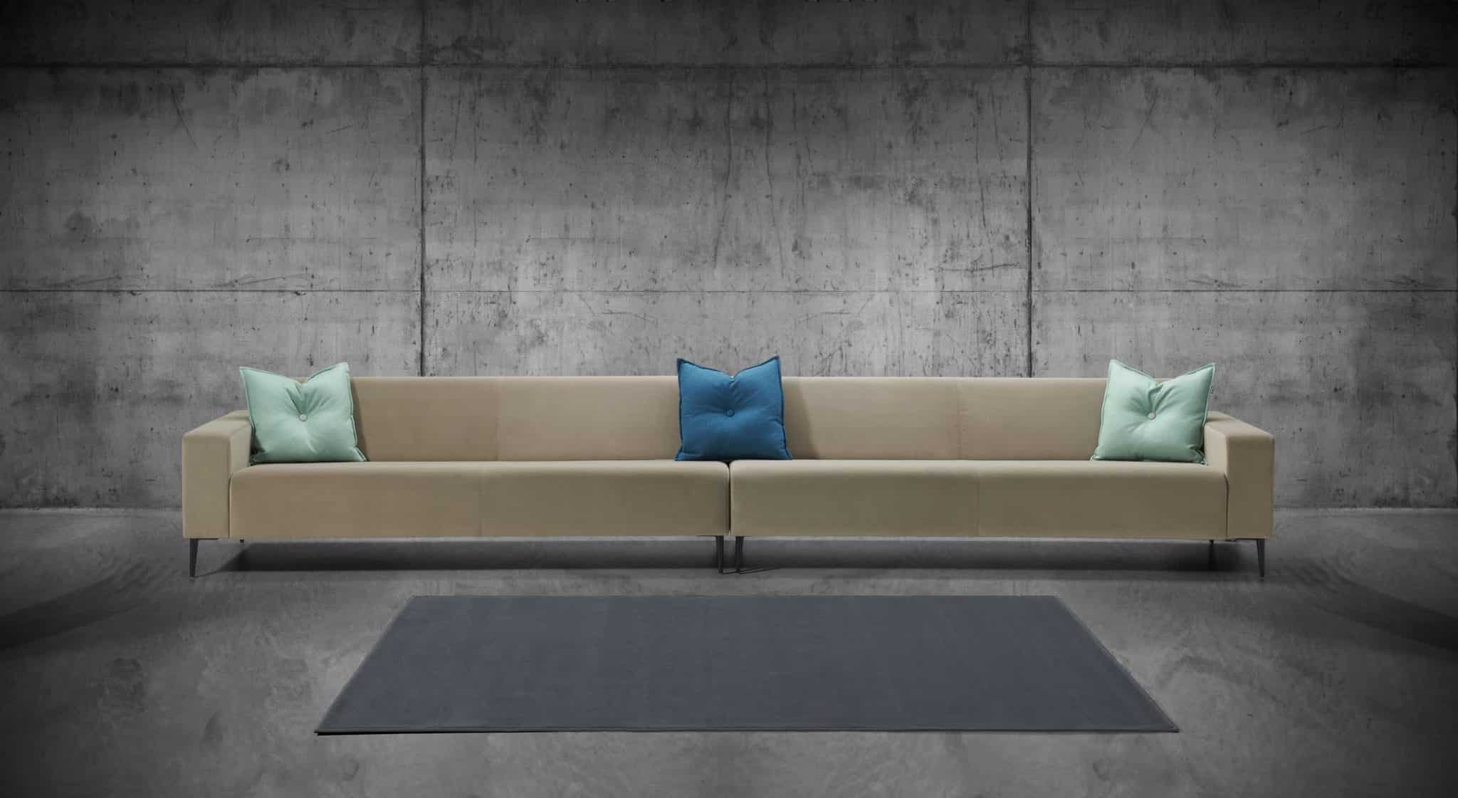Back cushion: Combustion modified high resilient (CMHR) foam. Tailored upholstery