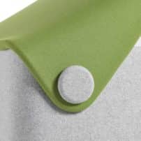 Upholstered acoustic linking panel providing spacing of 800mm between seating units