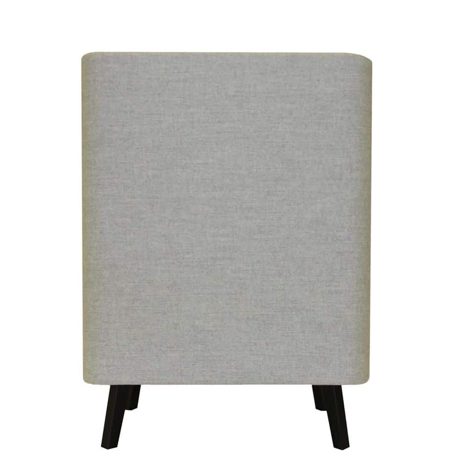 Back cushion: Combustion modified high resilient (CMHR) foam. Tailored upholstery.