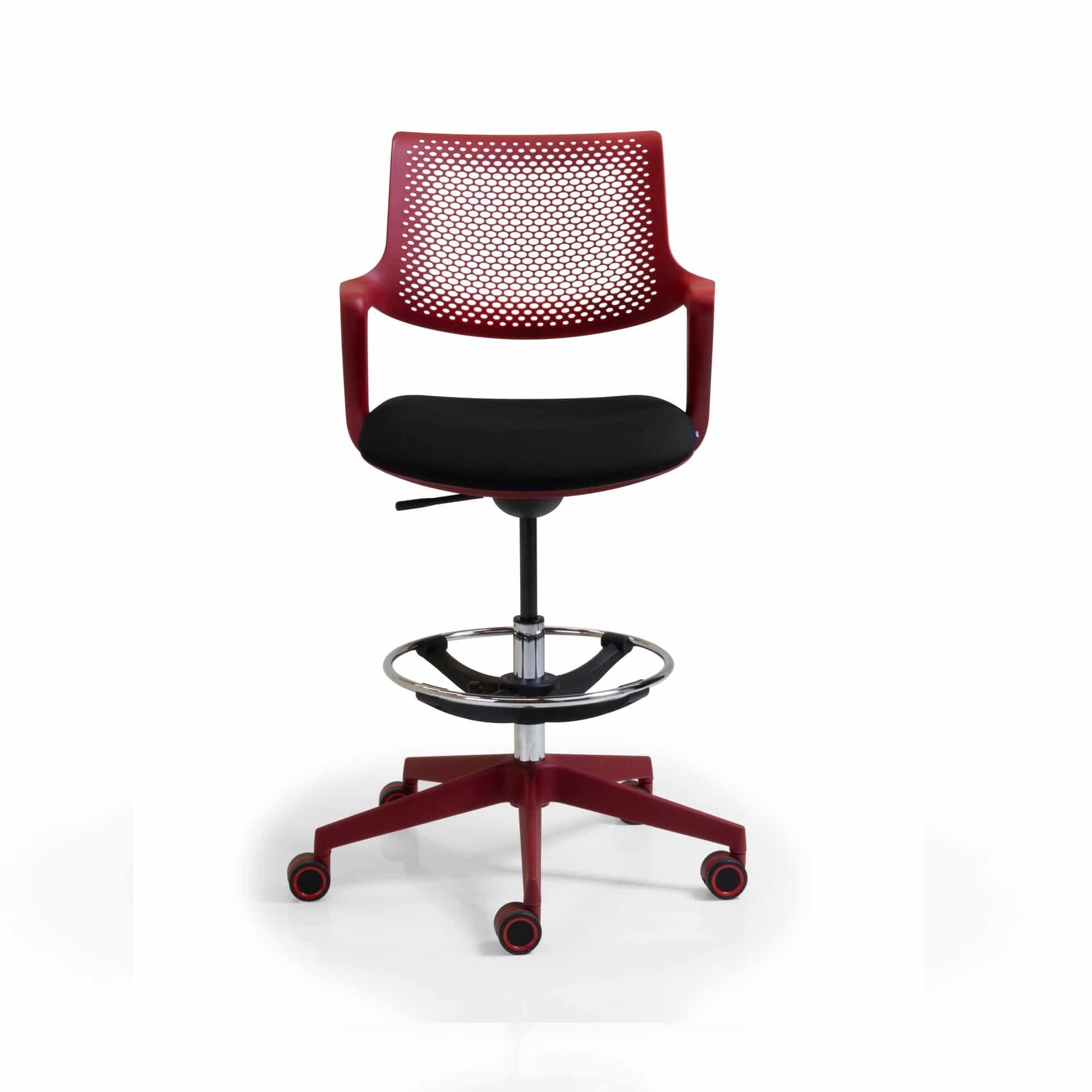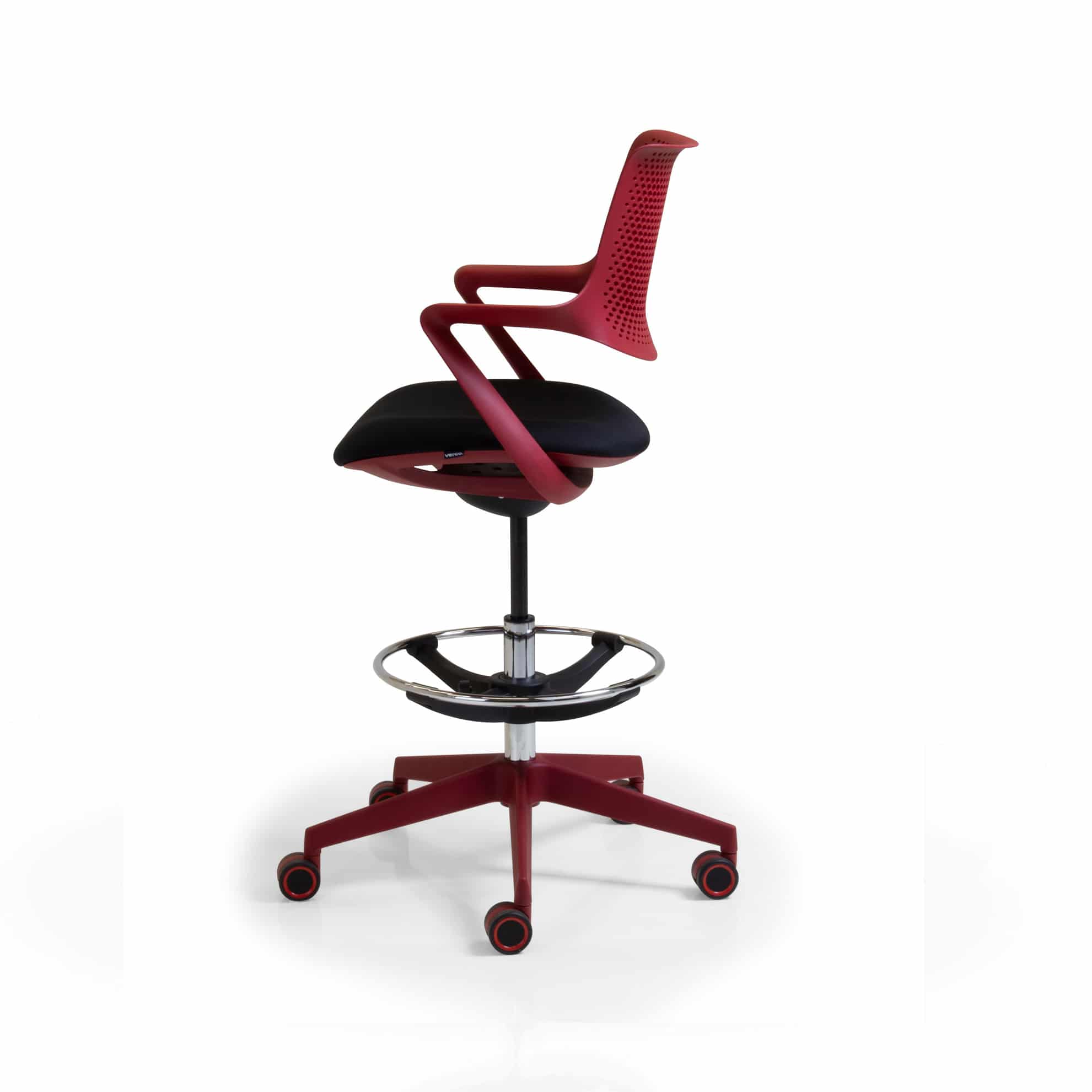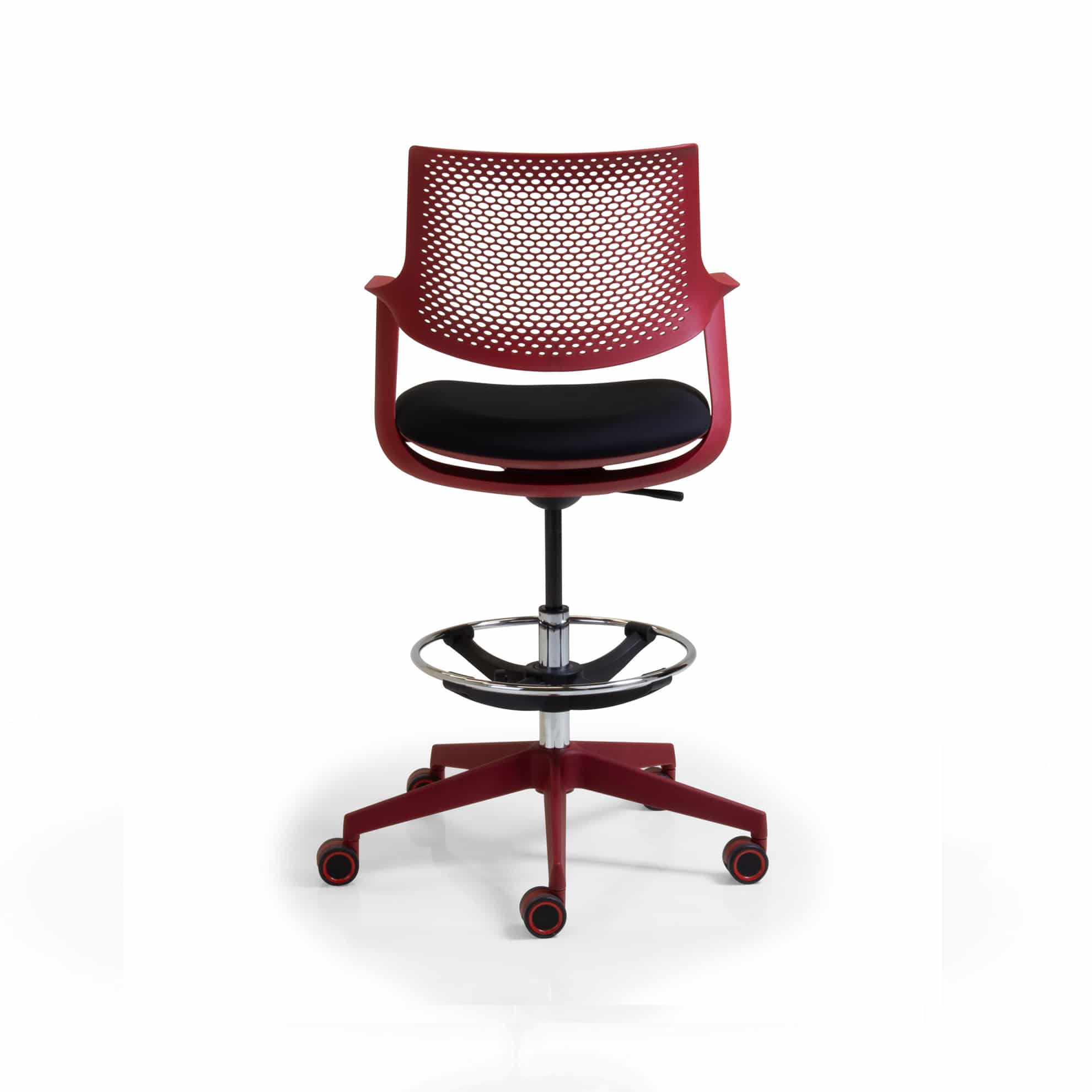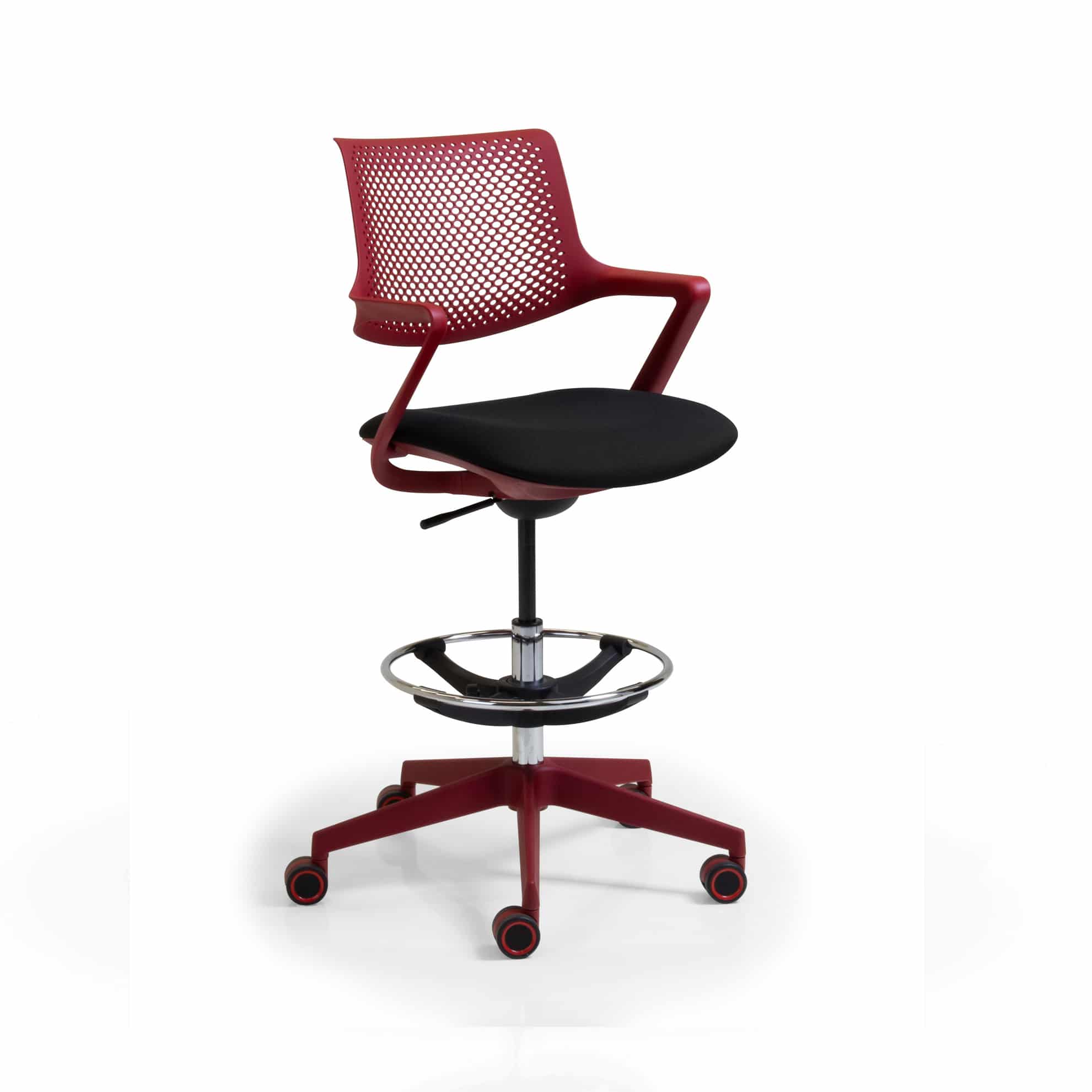 medium back ‘draftsman’ height armchair, with a swivel and tilt mechanism, on an adjustable footring and a black frame and base