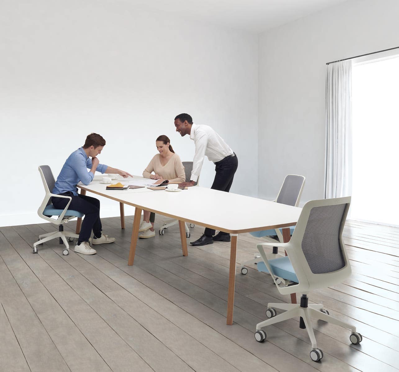 A task chair family with a wonderful clarity of design and simplicity of line. Clean lines and simple aesthetics mean that the Flow chair fits comfortably in most environments. Flow has a consistent design style; from the elegance of the new back frame to the specially designed and developed synchronised tilt mechanism, combining the back, armrest and seat in one continuous sweeping entity. A breathable, elastic mesh provides superb support over a large contact area for long term user comfort, while the option of visitor chairs, conference chairs and two heights of task chairs mean that there is a chair to fit your own space and your own requirements.