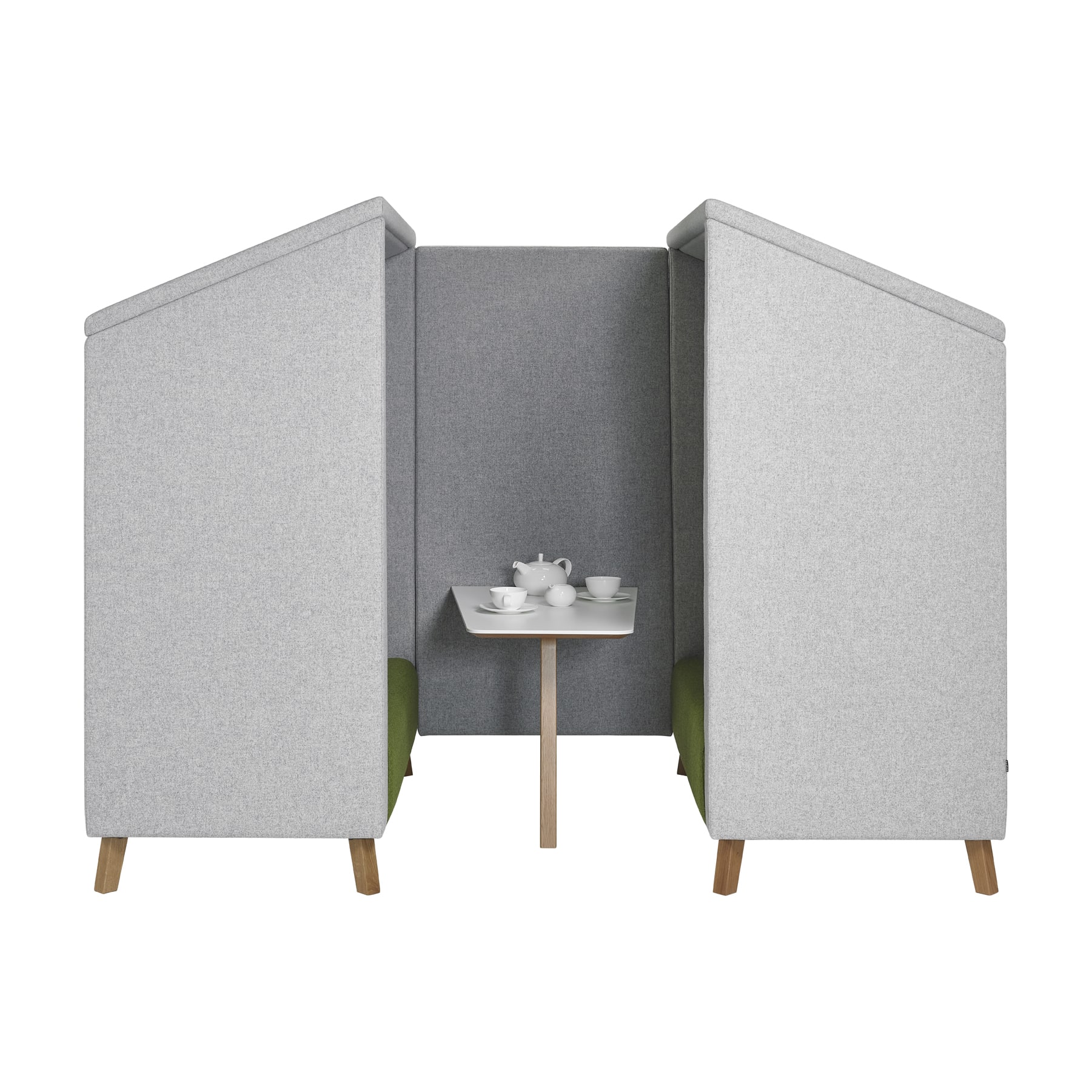 Based on the jensen soft-seating sofa, the jensen-shelter features a high acoustic surround, with the addition of an upholstered ceiling to afford an even greater degree of privacy in the modern, open-plan workspace.