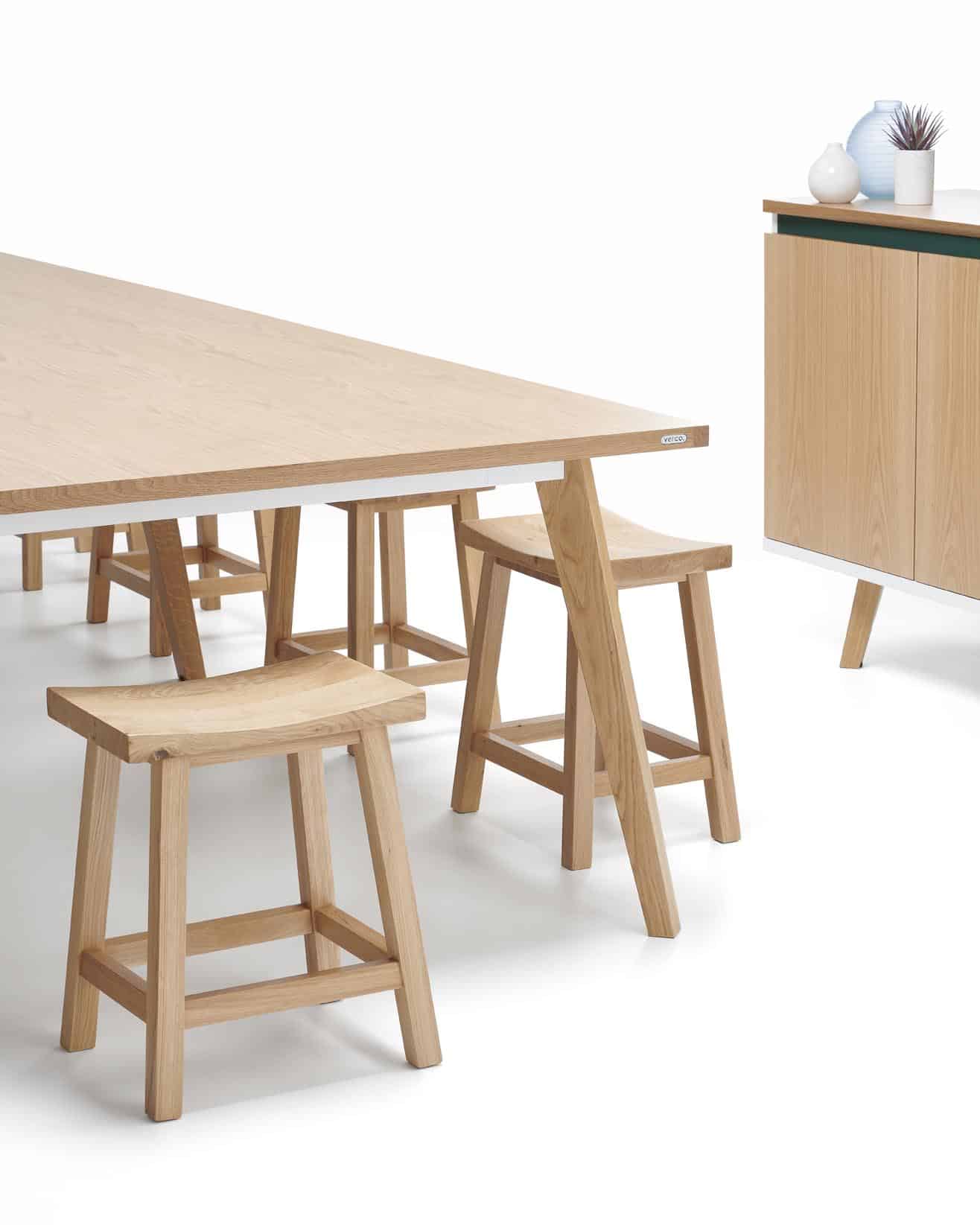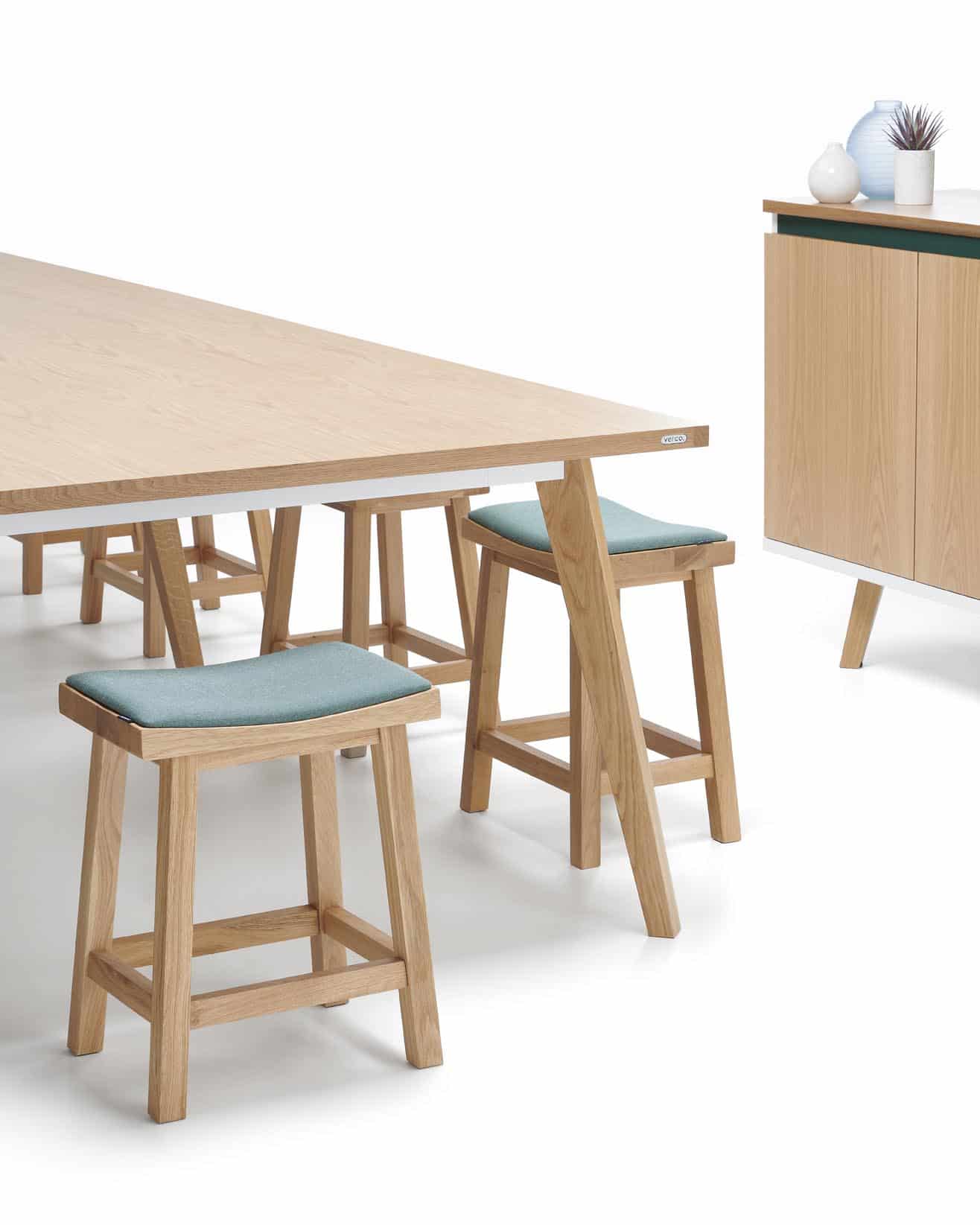 Subtly Scandinavian in style, the sculpted solid oak rectangular seat is supported by a complimenting solid oak frame incorporating a footrest. The option of an upholstered seat cushion provides an extra level of comfort and allows these