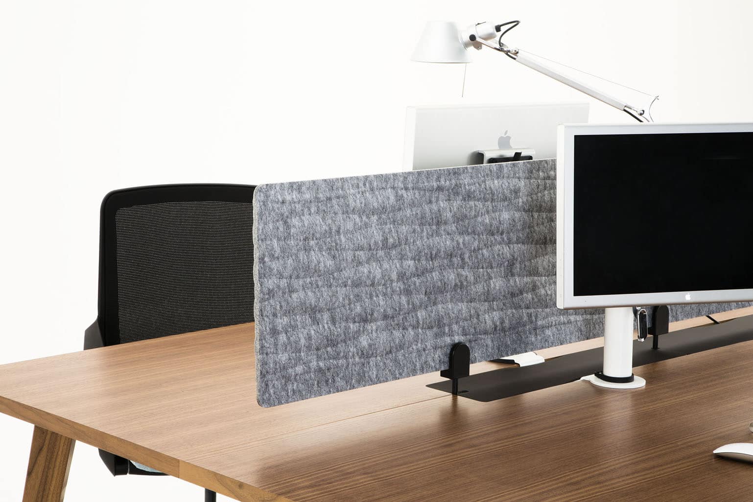 Martin desk mounted screens are available in two specifications and styles, from simple white frosted perspex division screens to the sophistication of 3D formed felt screens. All screens are easily and simply installed using the appropriate brackets and can be used to define different team areas within a workspace or to define different individual work areas within the work table.