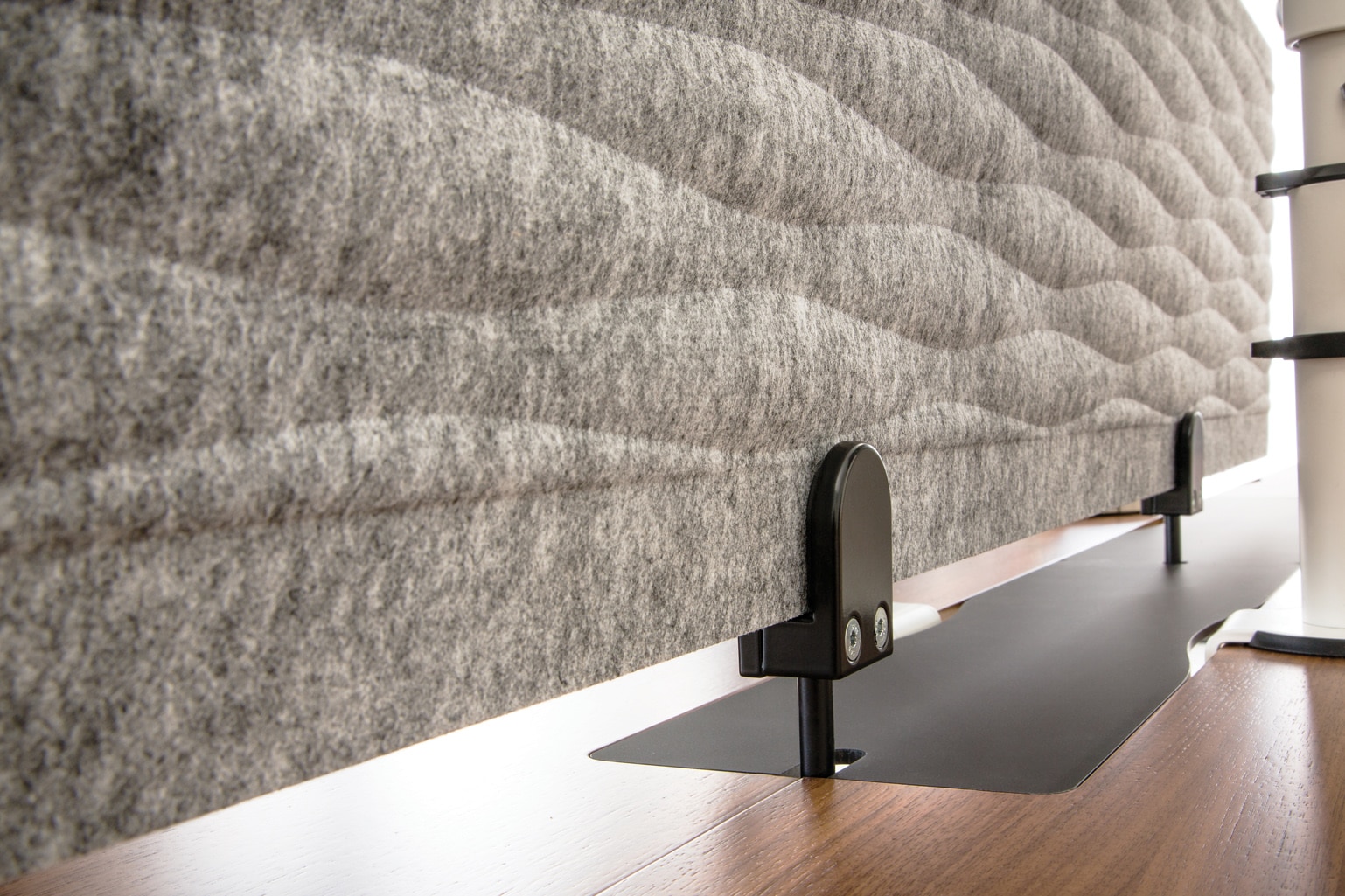 Martin desk mounted screens are available in two specifications and styles, from simple white frosted perspex division screens to the sophistication of 3D formed felt screens. All screens are easily and simply installed using the appropriate brackets and can be used to define different team areas within a workspace or to define different individual work areas within the work table.