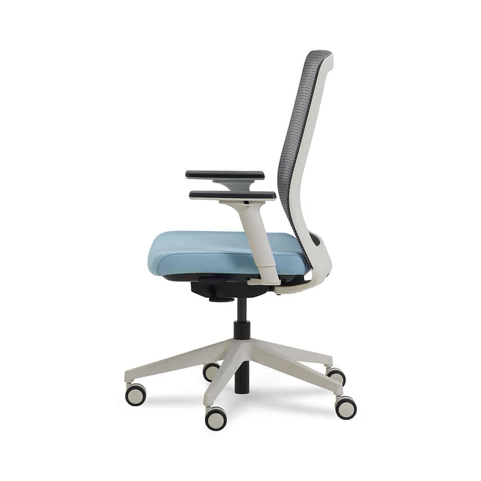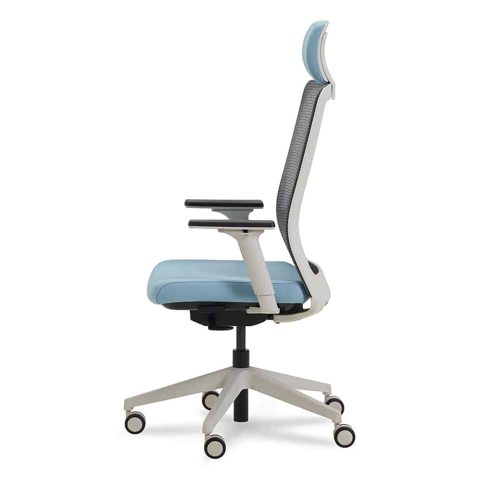 high back task chair with adjustable arms Linen white frame & base