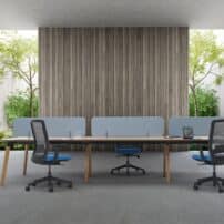 The Max chair has been designed with an ‘un-glued’ seat upholstery, so that no glue is used in its manufacture. This has an immediate impact on the volume of VOCs (Volatile Organic Compounds) which are present in glues being released during the production of the chair. This also enables the three different materials; plastic, foam and fabric to be separated easily at the end of life.
