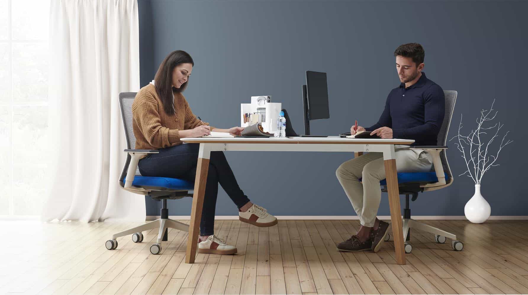 Seat: Shaped posture seat with distinct waterfall front edge. Combustion modified High Resilient (CMHR) foam. Tailored upholstery