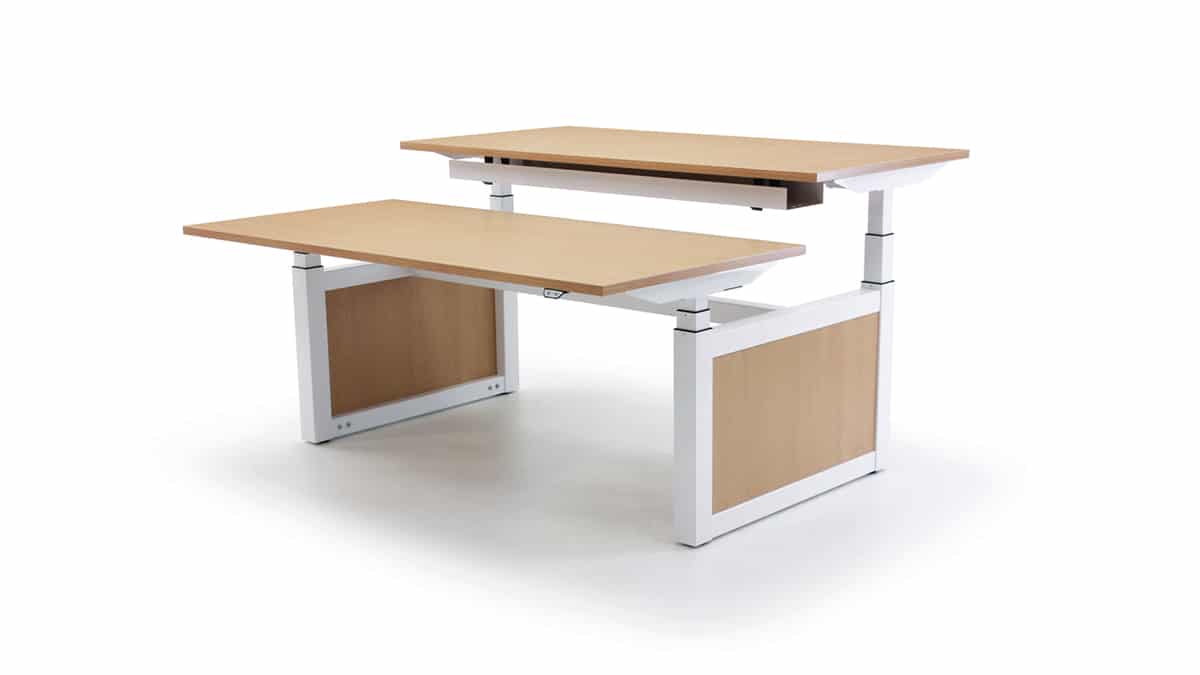 2 person back to back electrically height adjustable rectangular bench, including 2 x side to side spacer brackets.