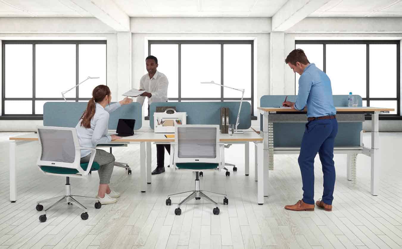 Oblique Adapt desking provides a stylish, robust and reliable height adjustable frame within the Oblique furniture collection.