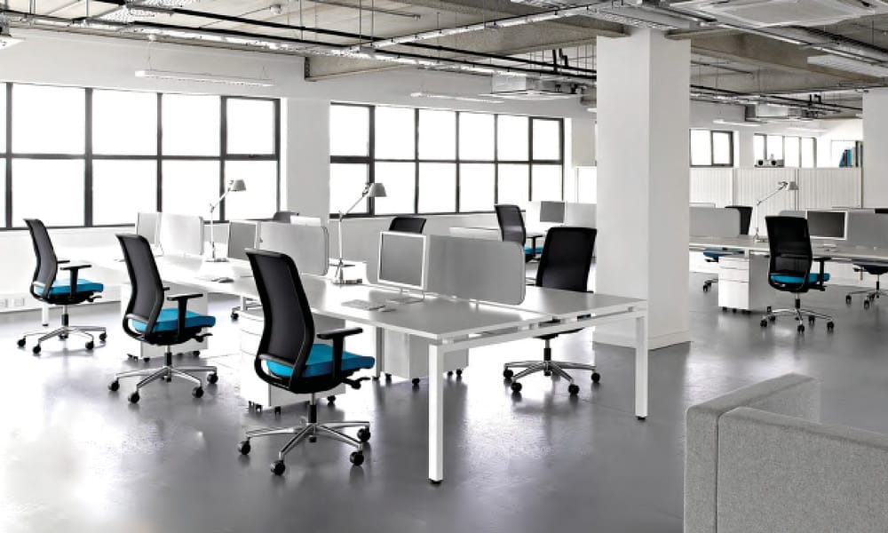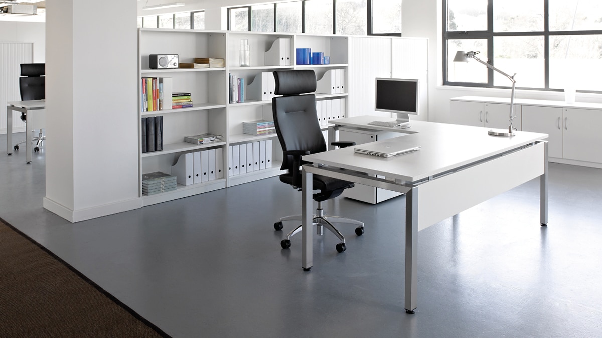 Silver, black or white metal leg frames include height levellers as standard, and can be shared between desks, end to end and back to back, keeping