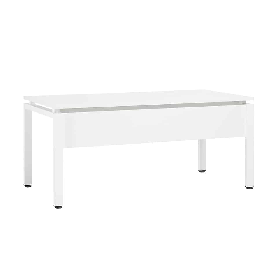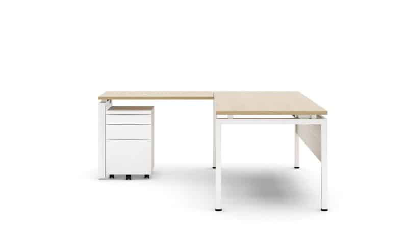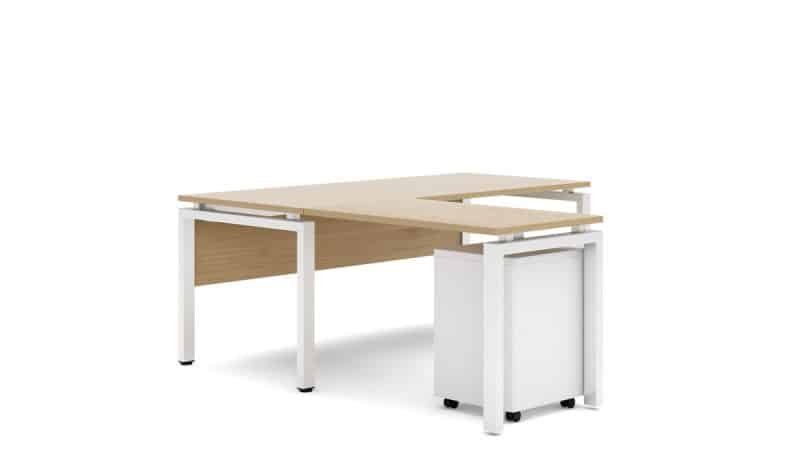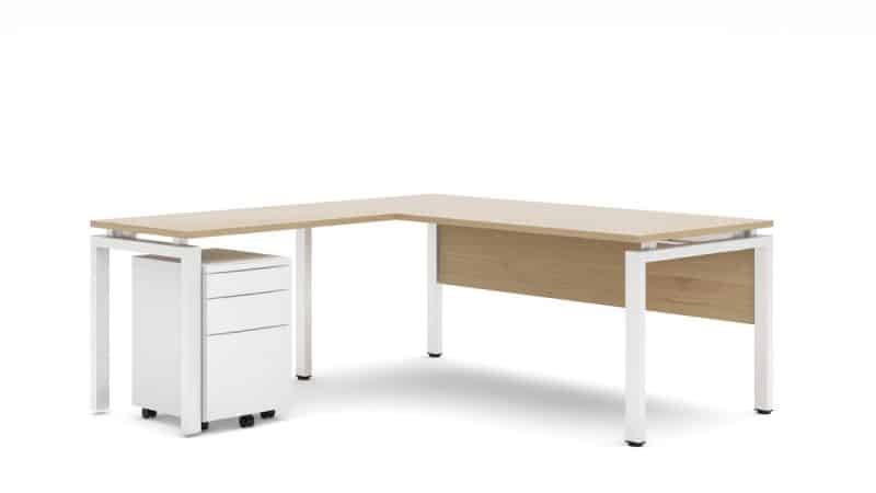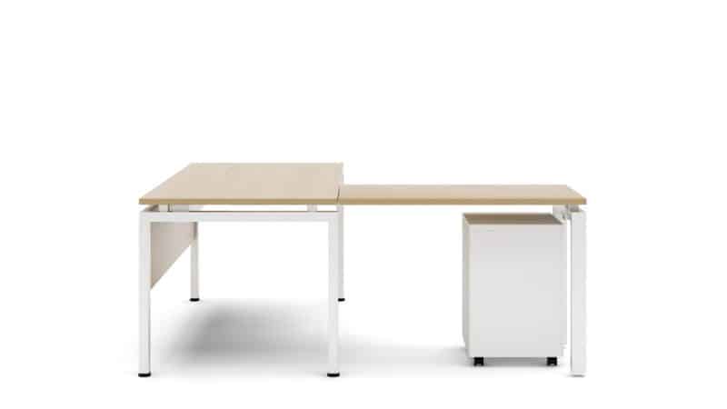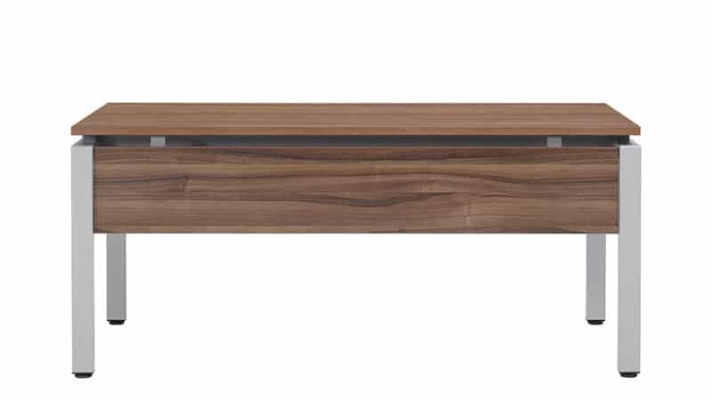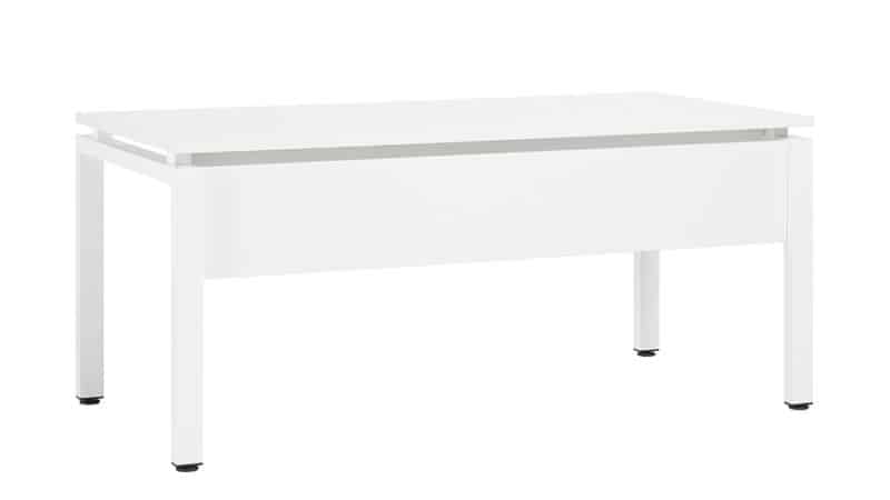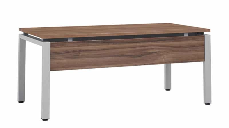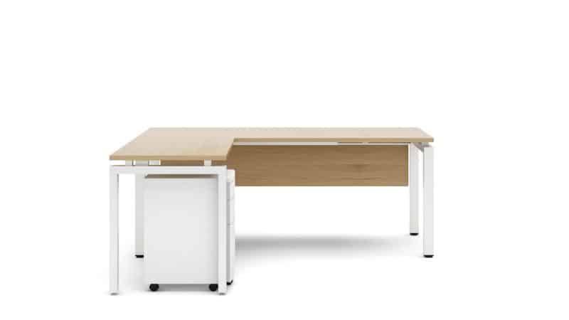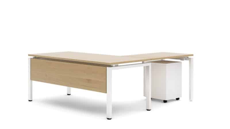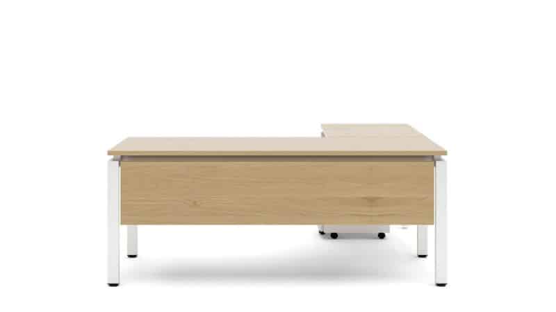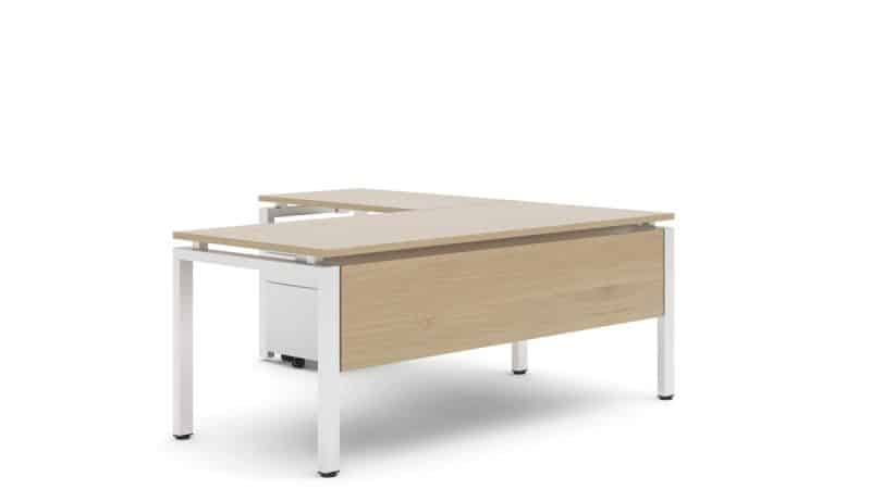 800 deep rectangular desk with left hand rectangular return unit and modesty panel.
