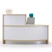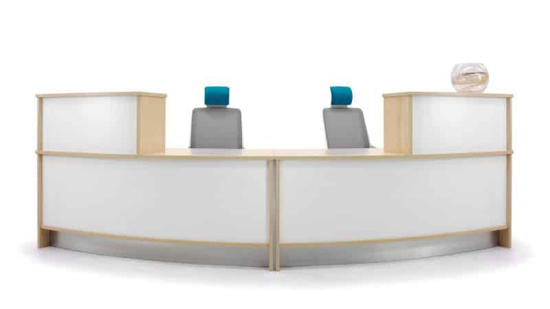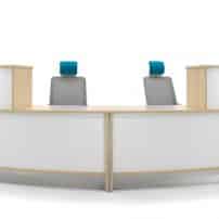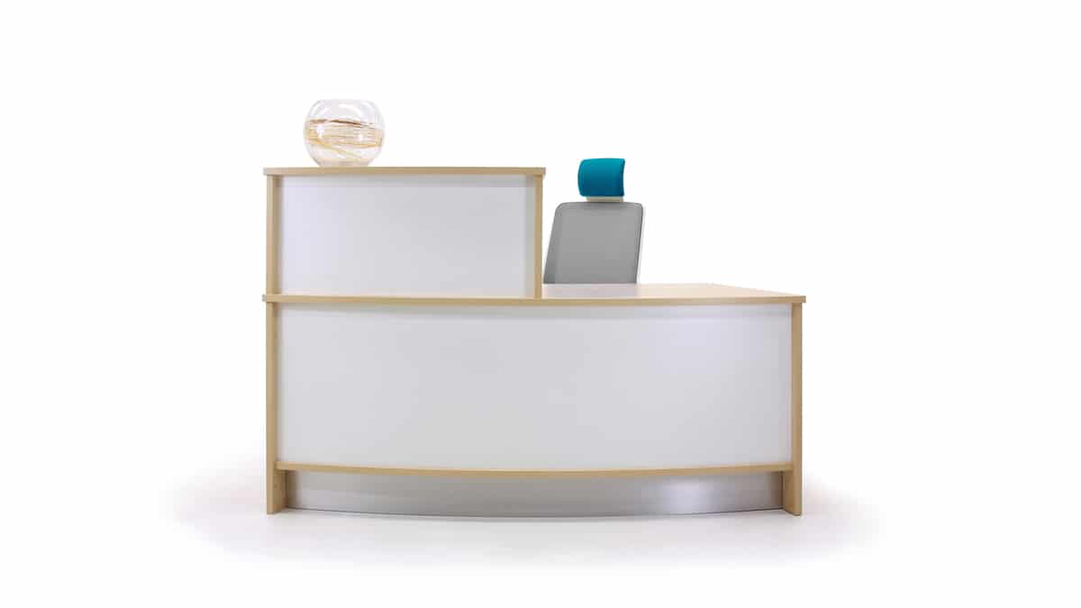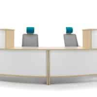 30 degree curved reception desk, with a full depth modesty panel and cut back plinth.
