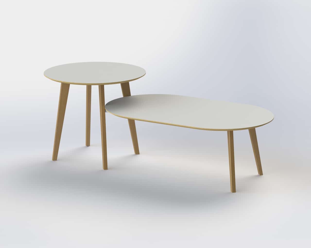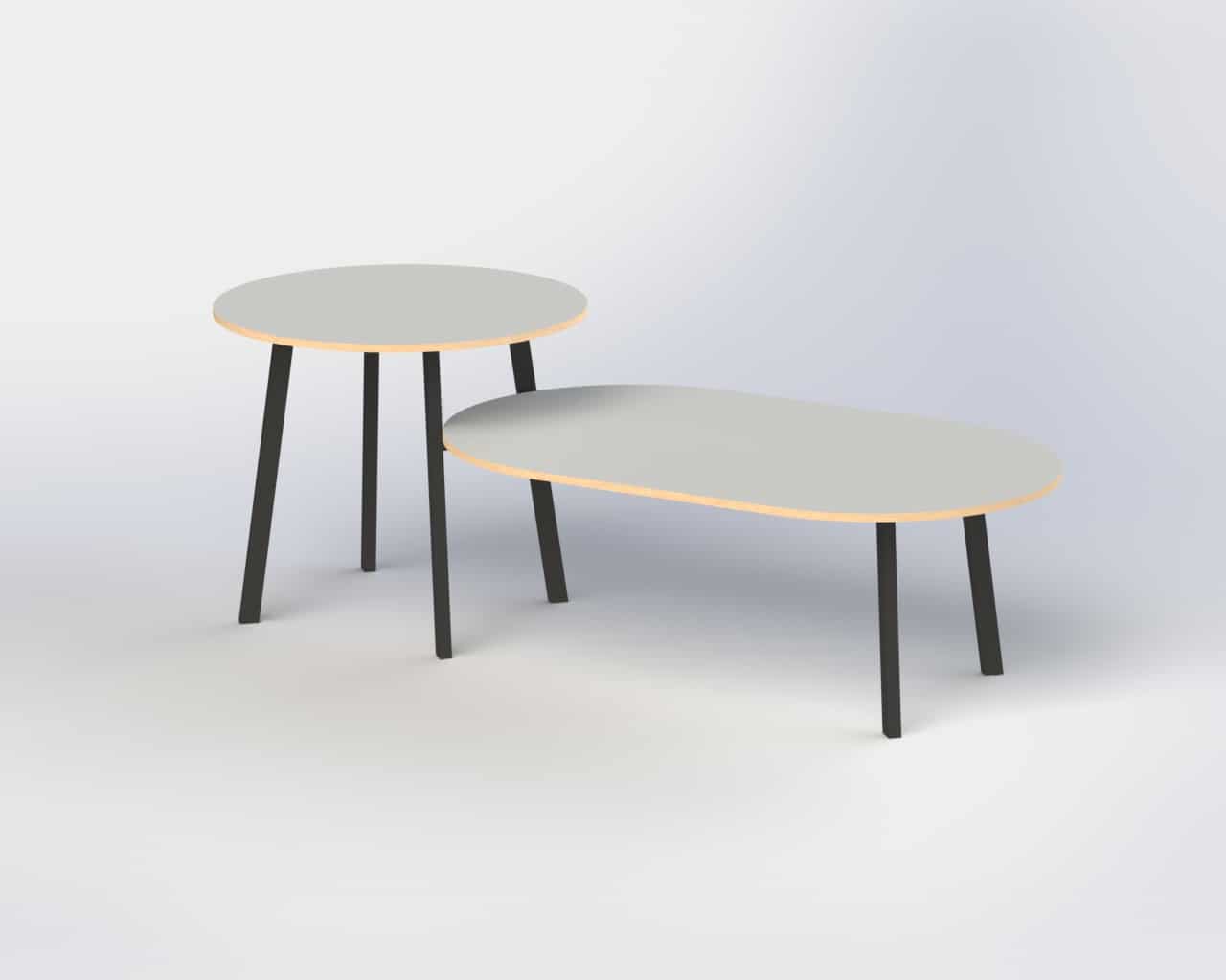 They are available both with solid wooden legs, (Martin) and with robust tubular steel legs (Campus). All tables feature a circular high table with a diameter equal to the depth of the oval table to which it is joined.