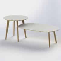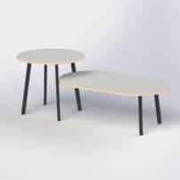 They are available both with solid wooden legs, (Martin) and with robust tubular steel legs (Campus). All tables feature a circular high table with a diameter equal to the depth of the oval table to which it is joined.