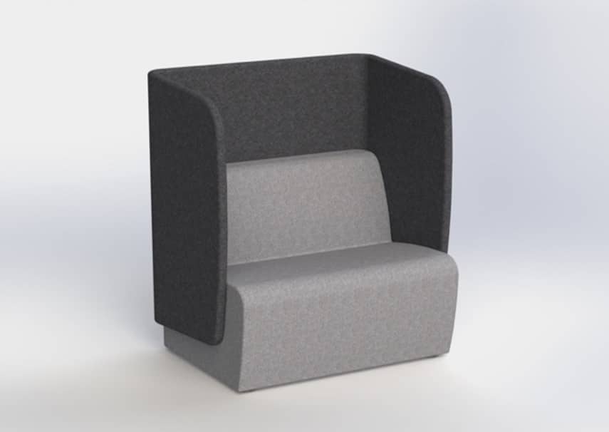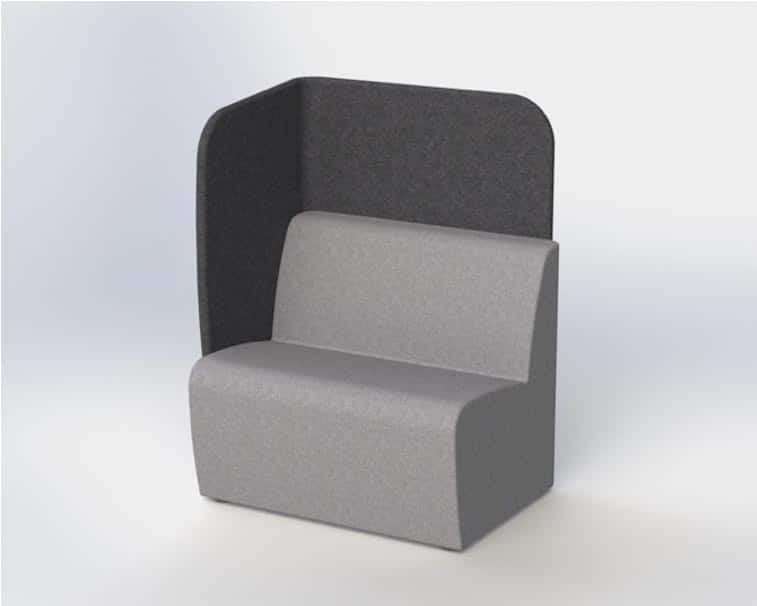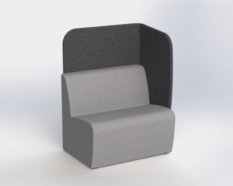 solo work booth, with acoustic surround on two sides, back and right hand facing