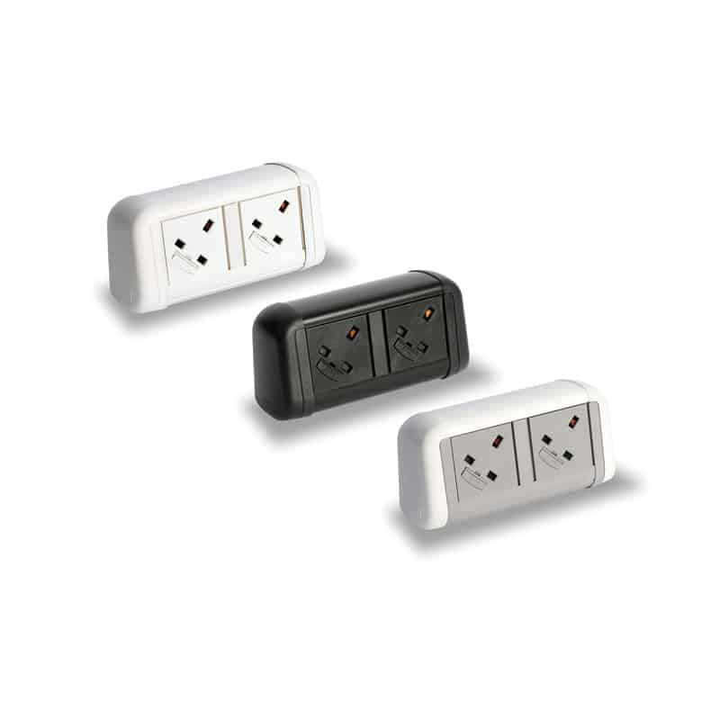 Desktop double power socket, individually fused to 3.15 Amps, with 1m mains lead to 3 pole connector. Each unit is supplied with a single āCā desk fixing clamp for desk tops up to 35mm thick