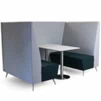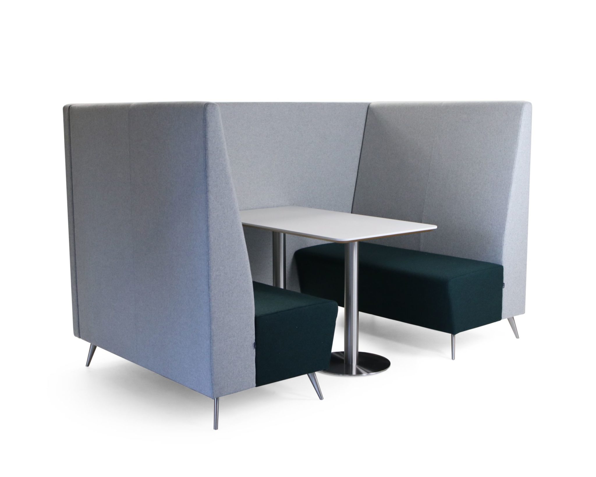 four person banquette seating unit with a link panel and an EDT 4, MFC finish table and a stainless steel column leg