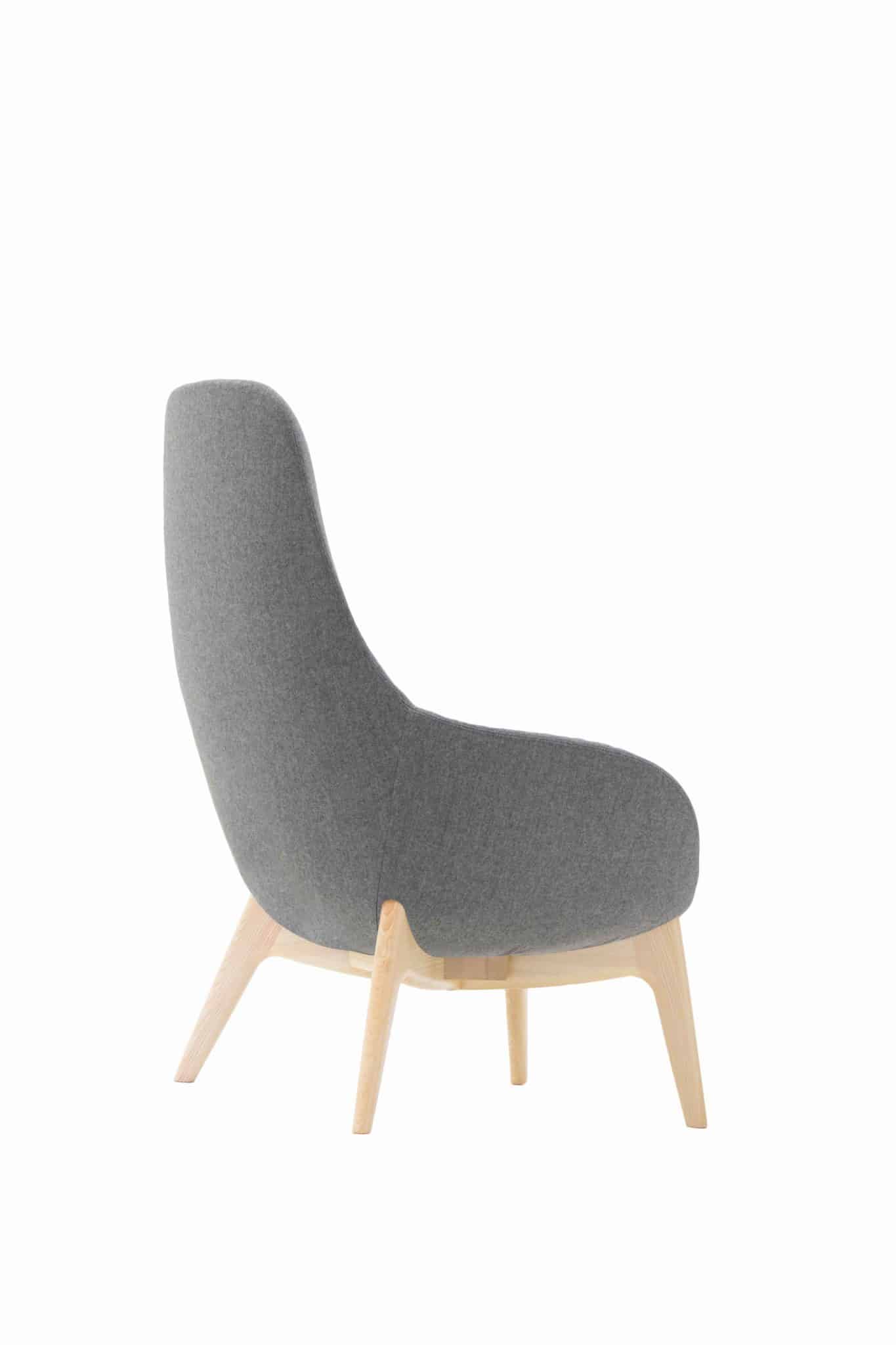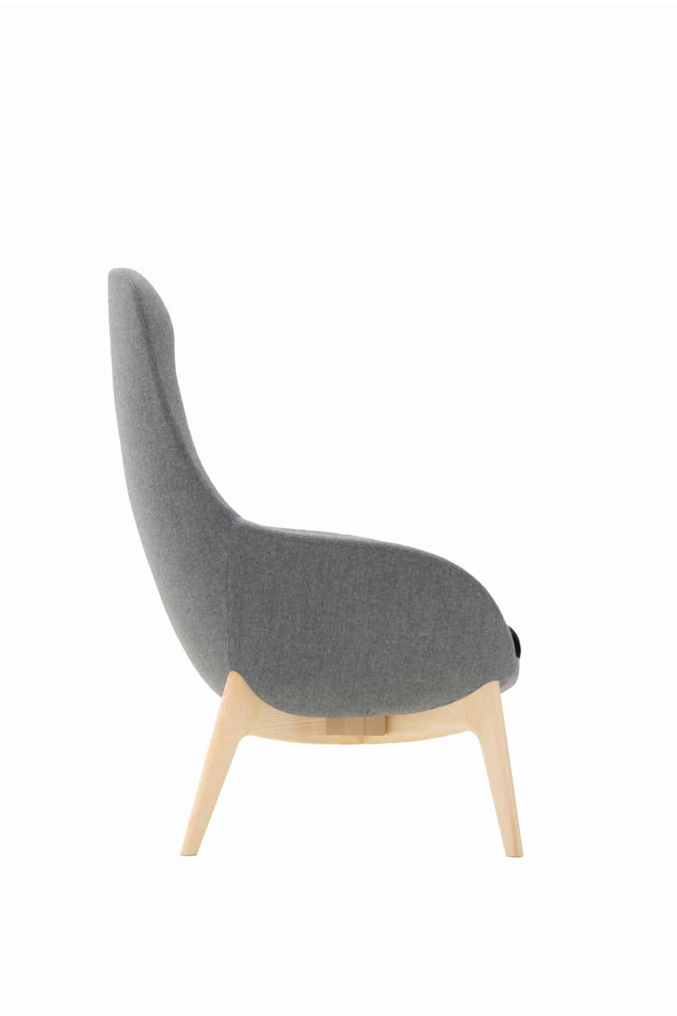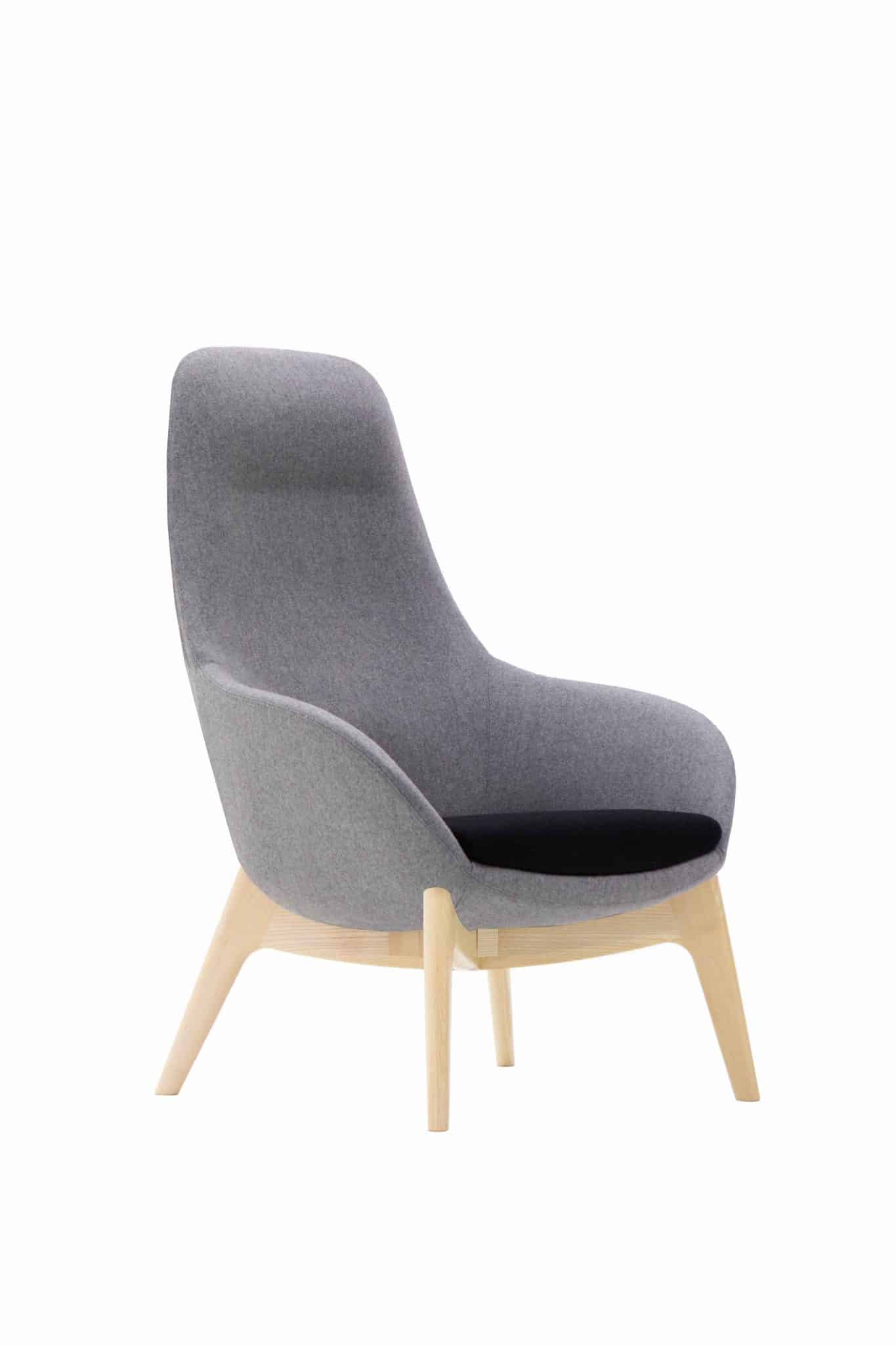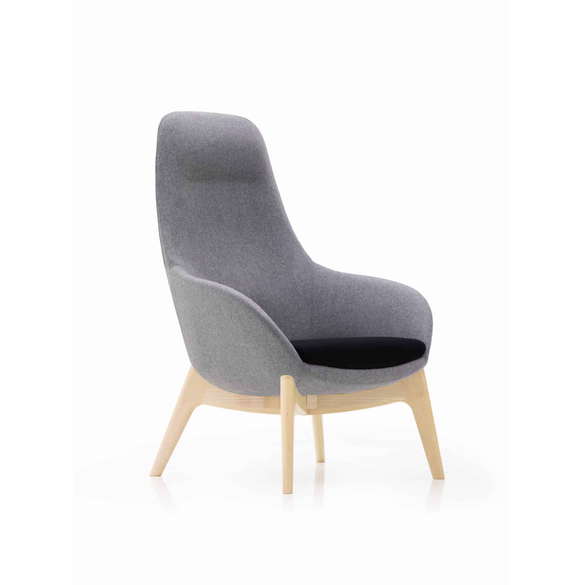 high back lounge chair with an ash wooden four legged frame