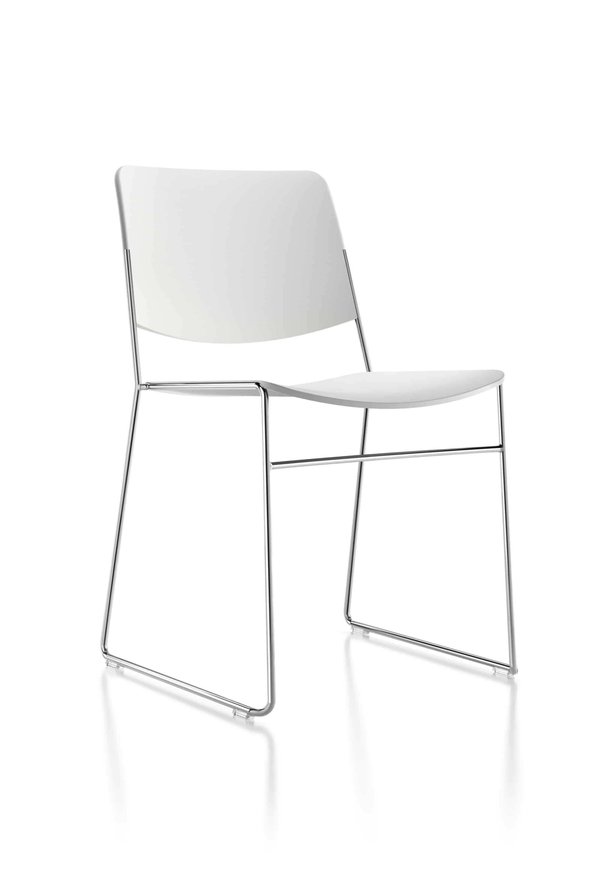The design of stacking chairs has moved forward with a seat and back made of high-performance, reinforced polyolefin resin. The state-of-the-art seat shell takes Stax60 to a whole new level. More stackable than any other chair Stax60 sets new standards in stacking, due to its lightweight construction, its close-coupling and its versatility