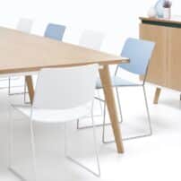 The design of stacking chairs has moved forward with a seat and back made of high-performance, reinforced polyolefin resin. The state-of-the-art seat shell takes Stax60 to a whole new level. More stackable than any other chair Stax60 sets new standards in stacking, due to its lightweight construction, its close-coupling and its versatility