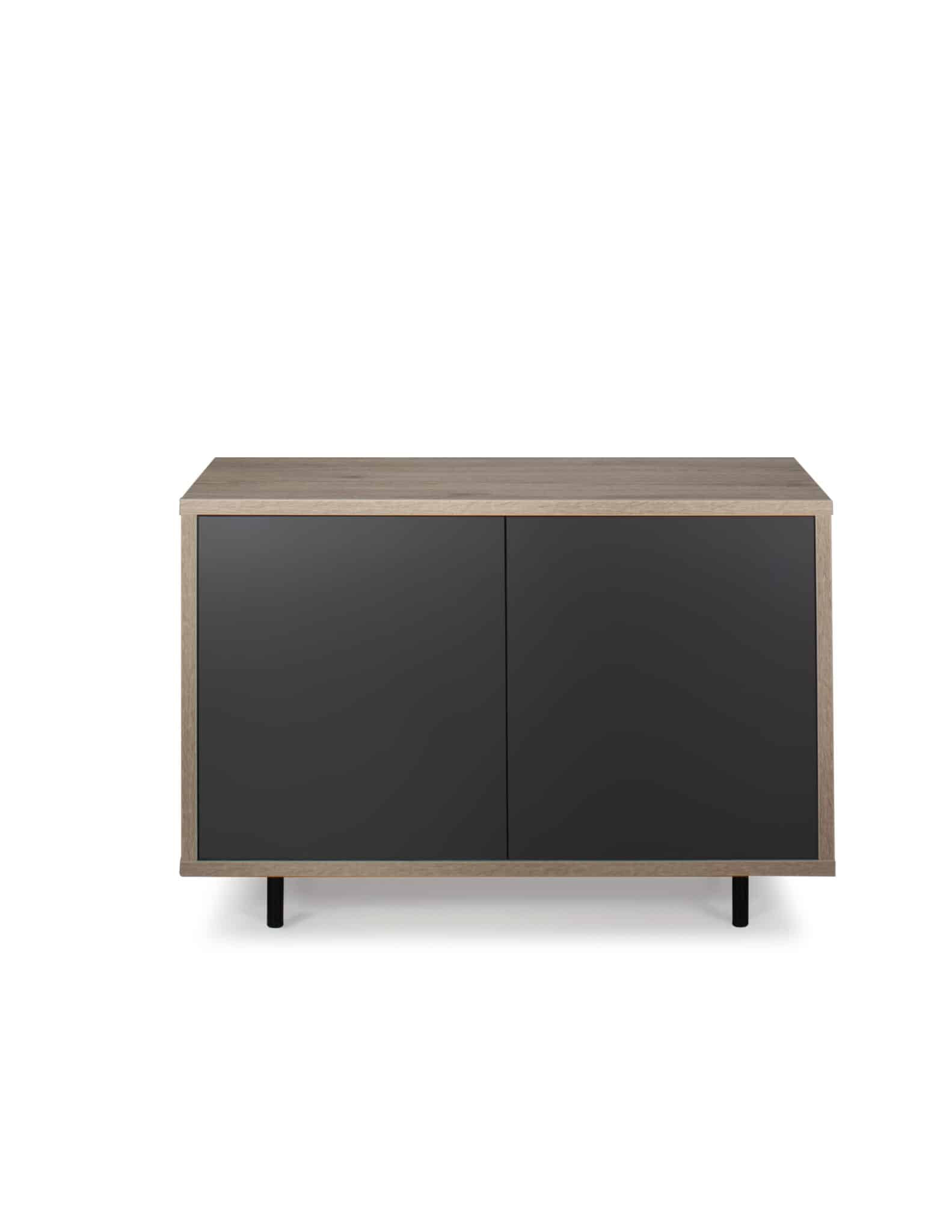 dividing low storage unit with two doors with an MFC carcass, back panel to match the doors and black legs