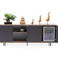 dividing low storage unit with two doors with an MFC carcass, back panel to match the doors and black legs