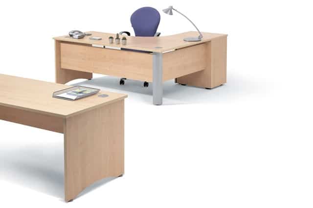 Visual Three – with the panel end. A different look with the same ease of assembly. Desk tops are 25mm thick MFC with 2mm edging for durability, matching MFC panel end leg frames include height levellers as standard. For individual desking or smaller configurations Visual Three provides the ultimate in flexibility.